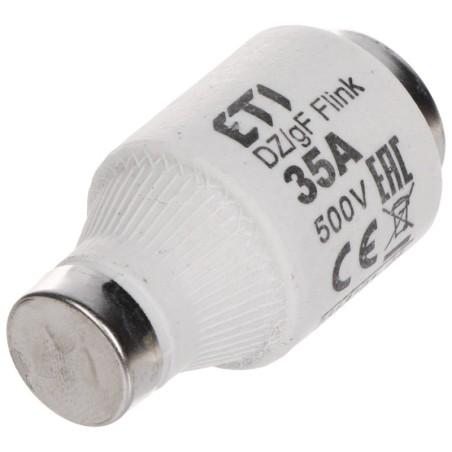 Rated current: 35 A ; Rated voltage: 250 V DC, 500 V AC ; Fusing characteristics: DZ/gF ; Fuse base: E33 ; Type: D ; Size: D3 ; Breaking capacity: 50 kA AC, 8 kA DC ; Housing: Ceramic ;