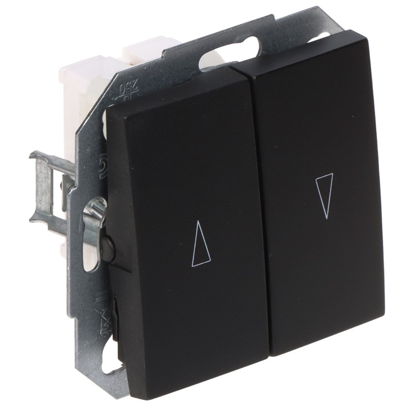 Device type: Roller Blind Switch ; Rated voltage: 250 V AC ; Rated current: 10 A (inductive load) ; Connectors type: Spring terminals ; Color: Black ;
